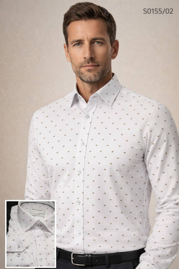 EGO-MAN Pánska bavlnená biela košeľa so vzorom. S0155/02